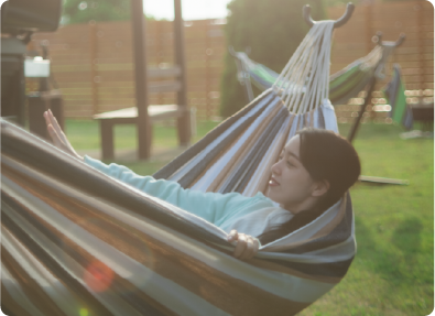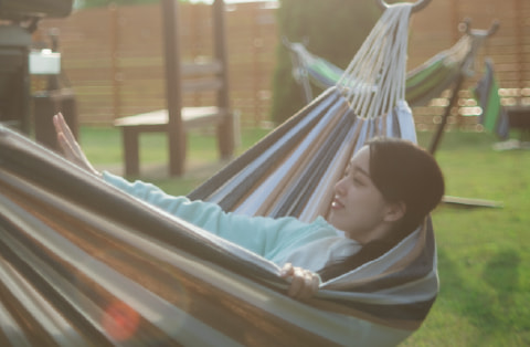 ハンモックやチェアなど、ゆっくりと過ごせるアイテムがたくさん!