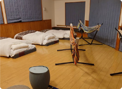 野外で寝るのが苦手な方も安心。綺麗な室内でもお休みいただけます。